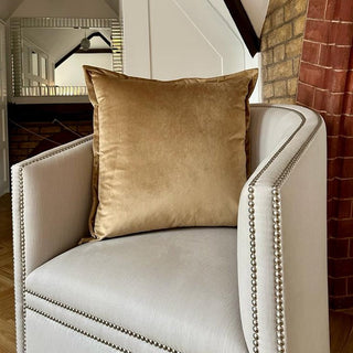 This sophisticated amber gold cushion is incredibly versatile. This colourway sits comfortably with both warm and cooler hues.