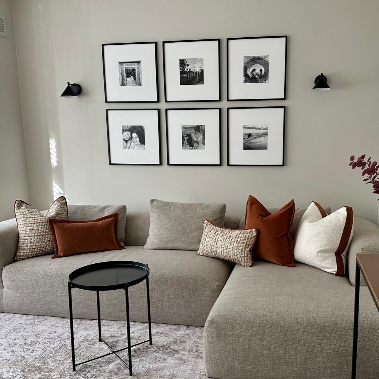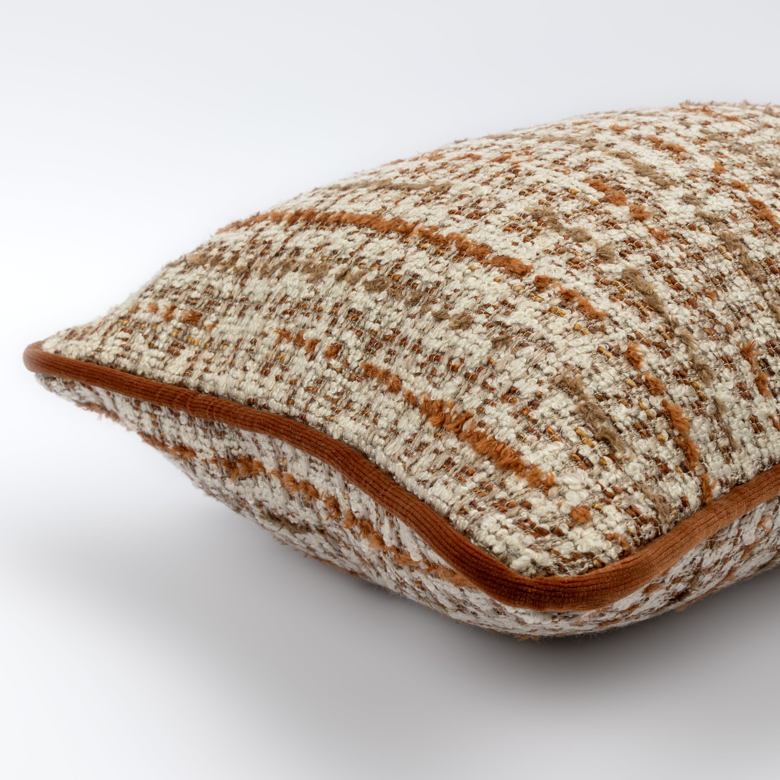 Five sumptuous cushions on this 3m wide sofa.  Three large and two smaller — create the perfect finishing touch for a cozy corner sofa. Crafted in rich velvet with an abundance of pattern and texture, they bring warmth and character to the space. Deep, autumnal hues blend beautifully to evoke the comfort of the season. The three larger cushions provide a soft, enveloping base, while the two smaller ones add layers of visual interest and snug support. Together, they transform the corner sofa into an irresistibly inviting nook — the ultimate spot to curl up and unwind.