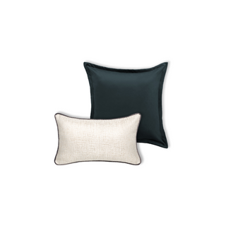Our rich, smooth petrol blue cushion brings a luxurious depth and elegance to any space, its smooth texture and bold hue creating an instant statement. Perfectly paired with our onyx black and beige cushion, this combination strikes a balance between drama and subtlety. The complementary cushion features a sophisticated weave with a modern edge, elevated by a fleck of trendy mustard that adds just the right hint of warmth and contemporary flair. Together, they create a stylish and refined look that blends classic tones with a fresh, on-trend twist.